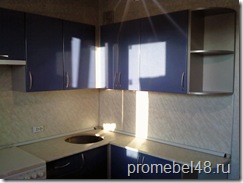 Кухня угловая с фасадами МДФ в синем цвете .